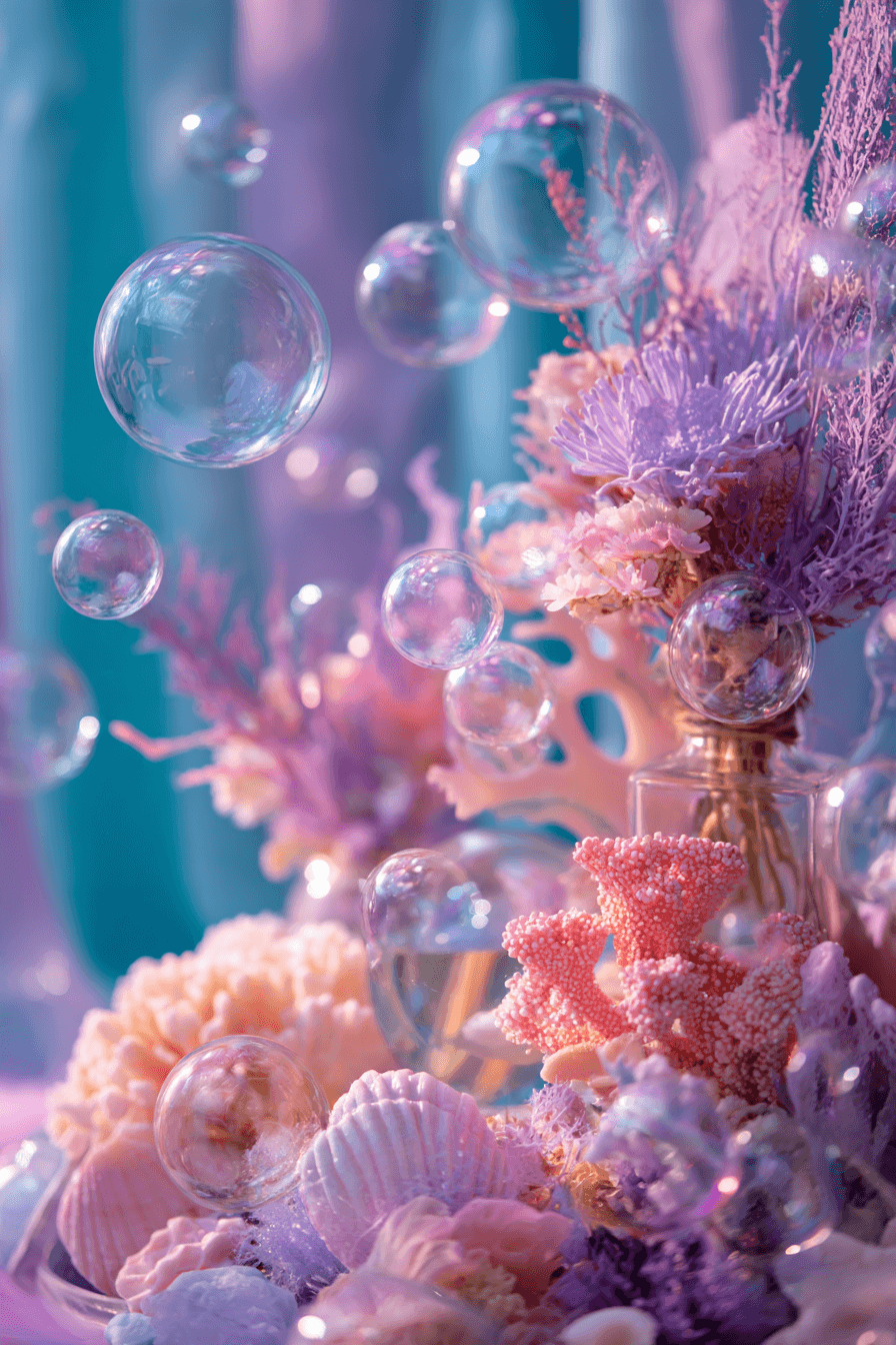 Create eye catching centerpieces with coral textures soft colors and ocean elements that feel rich and vibrant. These details elevate your Mermaid Birthday Party so start designing your tables now!