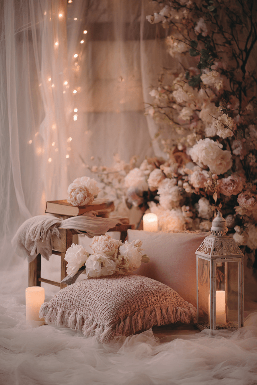 Create a warm and inviting scene with a soft Wedding backdrop design using pastel tones. Gentle textures blend together to form a cozy and charming look. The atmosphere feels light and welcoming. Start designing your sweet backdrop now.
