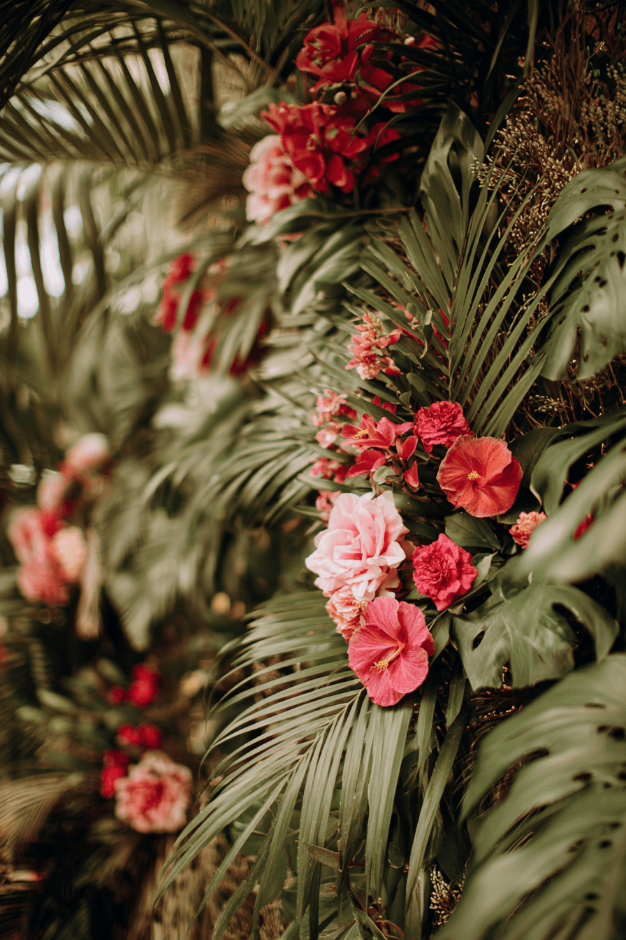 19. Tropical Wedding Backdrop Design with Bold Vibes