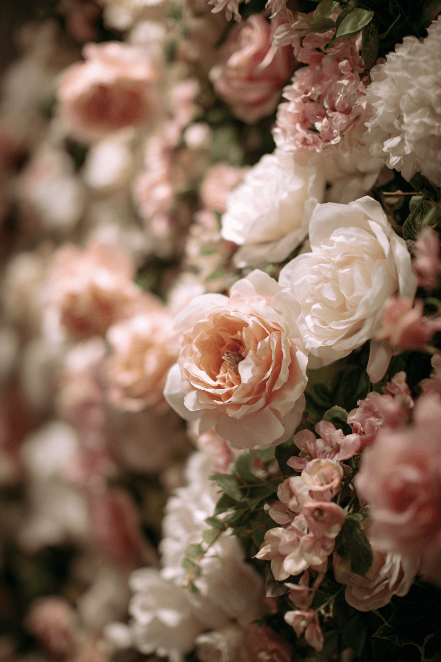 Surround your celebration with romance using a Wedding backdrop design filled with lush floral arrangements. Soft blush and ivory blooms create warmth and fullness without feeling overwhelming. The result is graceful and inviting. Start building your floral dream backdrop today.