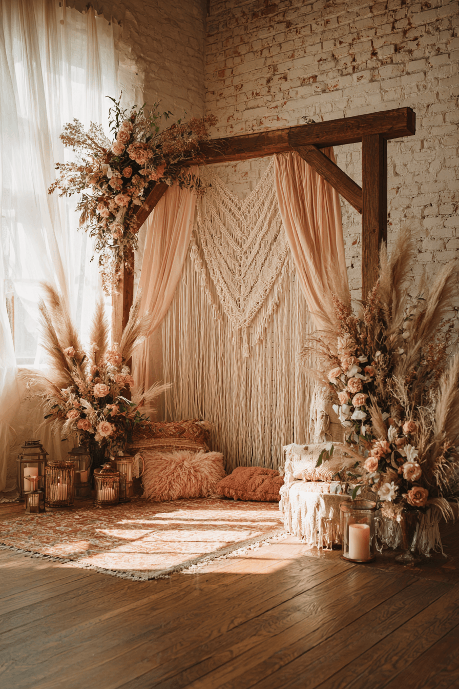 4. Bohemian Wedding Backdrop Design with Artistic Style