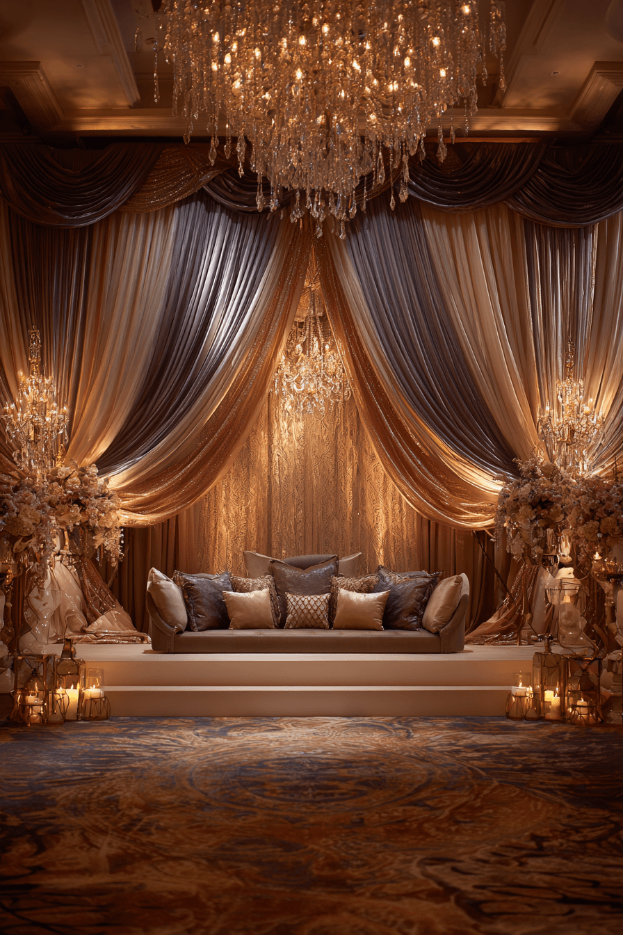 Turn your venue into a luxurious setting with a Wedding backdrop design that feels rich and elegant. Smooth fabrics and glowing accents create a refined atmosphere. Every detail adds a touch of glamour. Design your stunning backdrop and start today.