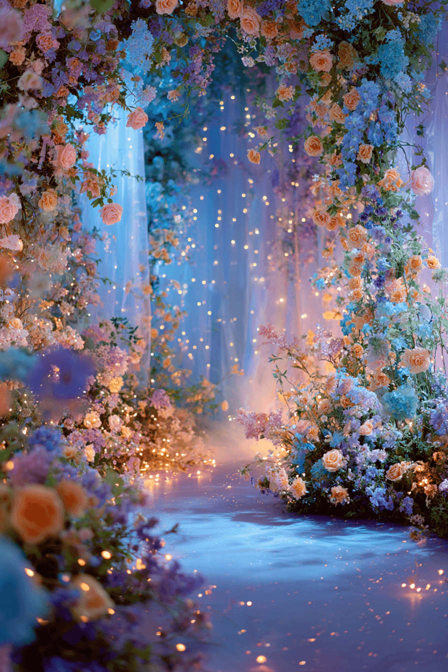 Step into a magical world with a whimsical Wedding backdrop design filled with light and color. Soft tones and playful elements create a joyful and enchanting space. The atmosphere feels like a fairytale come to life. Start designing your magical backdrop today.